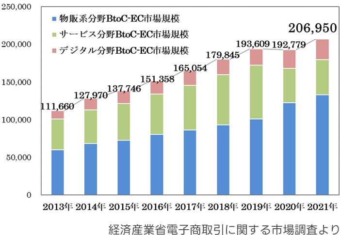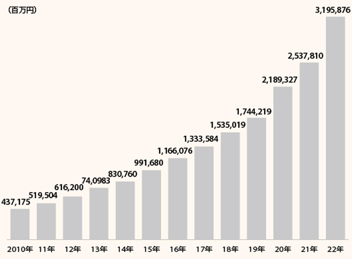 Amazonは2000年に日本市場に参入して以来、毎年右肩上がりの成長を遂げてきましたが、コロナの影響もあり、ここ数年の成長は特に目を見張るものがあります。