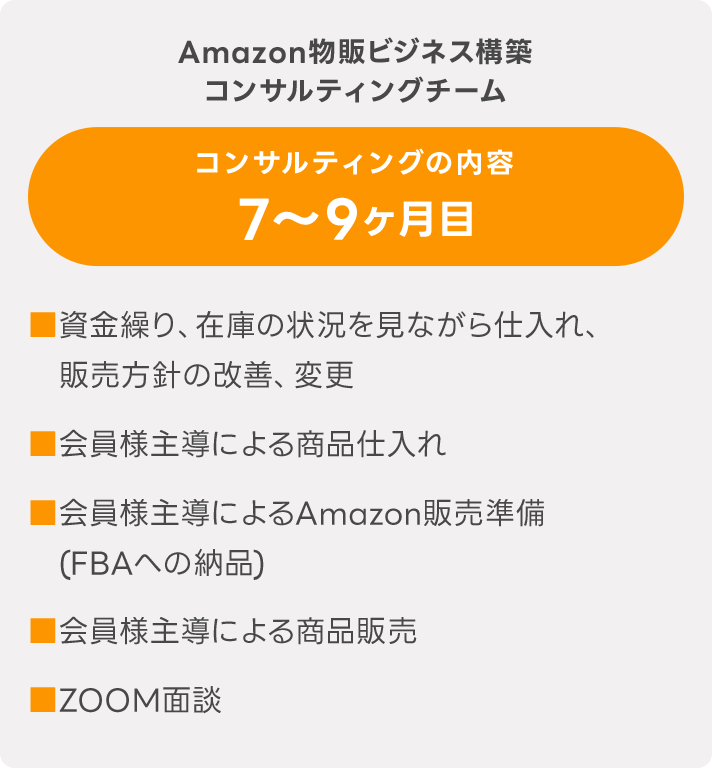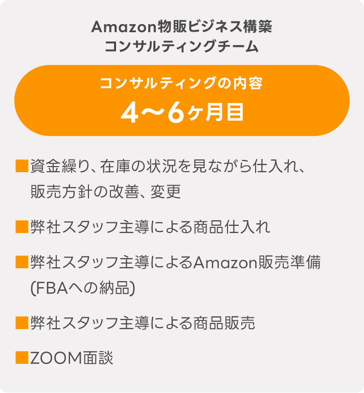 サポートはなくなりますか?コンサルティング期間が終了した後も、弊社から仕入れを続けていただいている限りサポートいたします。
